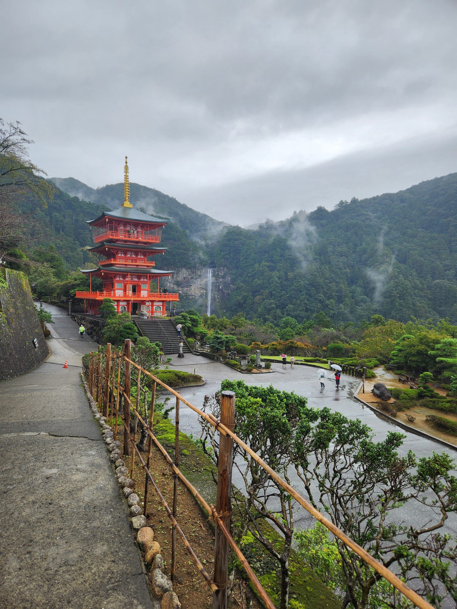 伊勢市~鬼ヶ城~熊野古道大門坂~熊野那智大社~那智山青岸渡寺~三重塔~那智の滝~那智勝浦(亀の井ホテル)